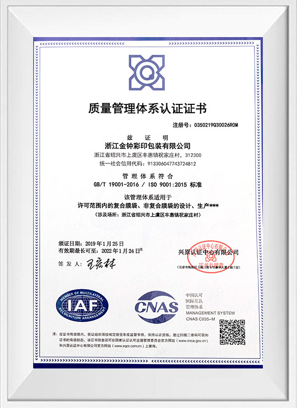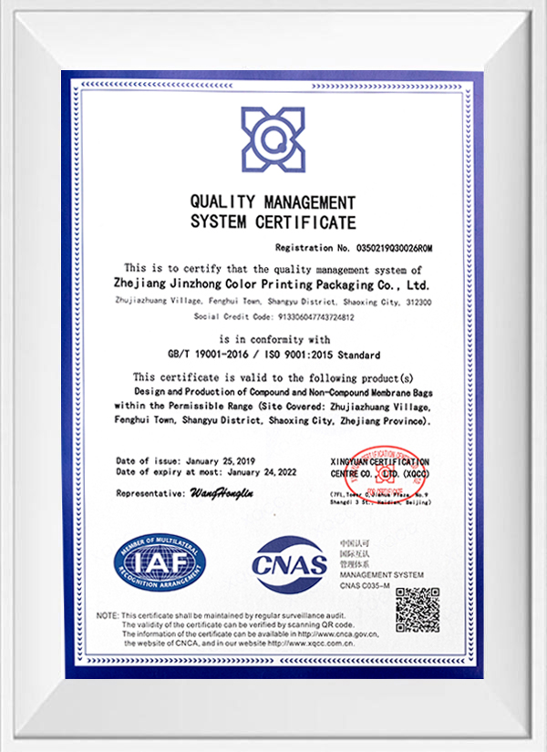 تأسست شركة Zhejiang Jinzhong Color Printing & Packing Co. ، Ltd. في 1 مايو 2005. الممثل القانوني: Zhou Jinzhong ، برأس مال مسجل قدره 12 مليون يوان ، يقع في Zhujiazhuang ، Fenghui Town ، Shangyu District ، Shaoxing City ، مسقط جميل من Liangzhu. متخصصون في إنتاج أنواع مختلفة من الأكياس ذات الختم الأوسط ، وأكياس الختم ثلاثية الجوانب ، وأكياس البولي إيثيلين ، وأكياس الألوان BOPP ، ومنتجات تغليف أغشية الأنبوب المركب المختلفة ، والتي تستخدم على نطاق واسع في الأغذية والحياكة وغيرها من الصناعات. تحتل الشركة مساحة تزيد عن 10000 متر مربع ومساحة بناء تبلغ 7000 متر مربع. إنه على بعد 40 دقيقة بالسيارة من هانغتشو ونينغبوه ، والنقل مريح للغاية. حصلت الشركة على شهادة نظام الجودة ISO9001: 2000 ، وشهادة QS ، وتقدمت بنجاح بطلب للحصول على 15 براءة اختراع. إنها تعتني بوحدة التفتيش الخاصة بها وتوفر الفحص لمنتجات التصدير.